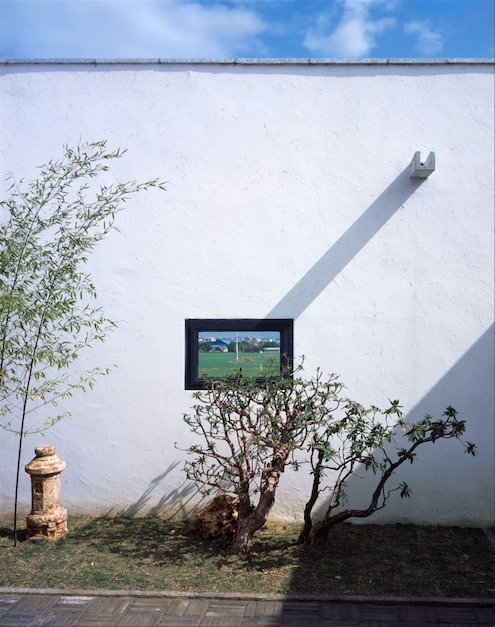 In Zhao’s ZhuAn, there are a variety of viewpoints, framed by a heterogeneous collection of apertures. Most of its windows are visible from its eastern field-facing elevation (Fig.14), some operable fully and some just partially, they are all installed at different heights and present an individualized view. Similar to Shui’s villa, each of the windows is viewed and framed differently, but the main difference is that the windows in the villa need to maintain a uniformity because of its program, therefore in Zhao’s house there is a higher level of customizability. The window in the front yard is so small that one could easily mistake it as a picture frame (Fig.15), the larger horizontal window next to the frame is the kitchen window, letting in more light to a relatively dark space but at the same time allowing the same view to be seen directly from the dining pavilion. The dining room also features three other views towards its north, west and south side—all internalized—reiterating that fact that the house is not comprised of a binary inside-outside, but of disparate and serial spaces. An also notable space is the living room where the largest horizontal window is (Fig.14). Here the space is sandwiched between two apertures: the above mentioned window towards the outside field and an internal window exposing a framed view towards the master bedroom bypass (Fig.16). This duality poses an interesting tension where one is constantly in flux between an uncontrollable, ever-changing exterior condition and a controlled, stabilized interior. According to Zhao, this is an extremely crucial aspect to a residence as it actively fights stagnant fatigue and promotes a freshly changing fluidity.